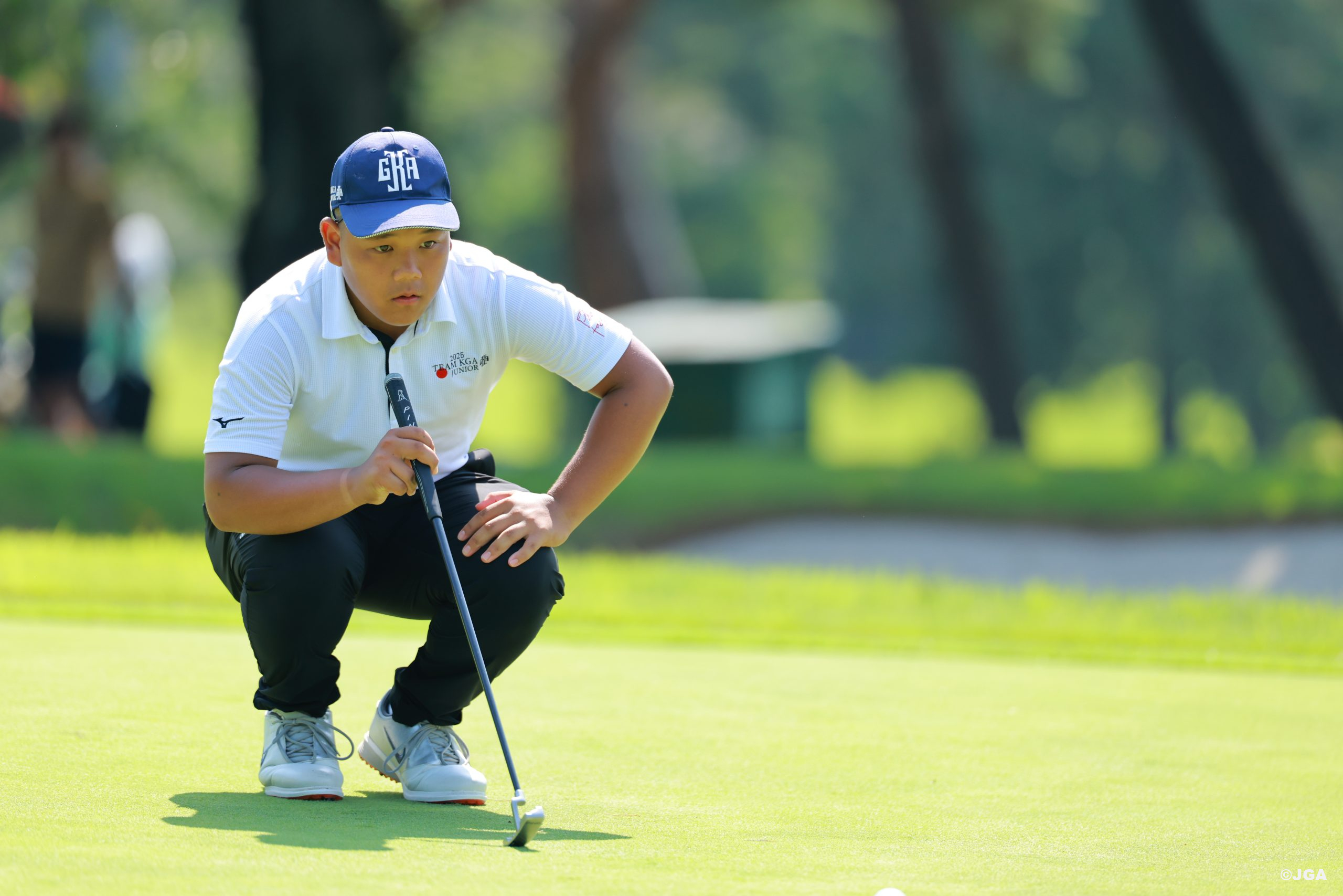 9ホールの競技となった第1日、首位と1打差の3アンダーパーで2位につけているのは今年の関東ジュニア選手権(「12~14歳の部」)で、2位に12打差のぶっちぎり優勝をやってのけた高浦維吹だ。