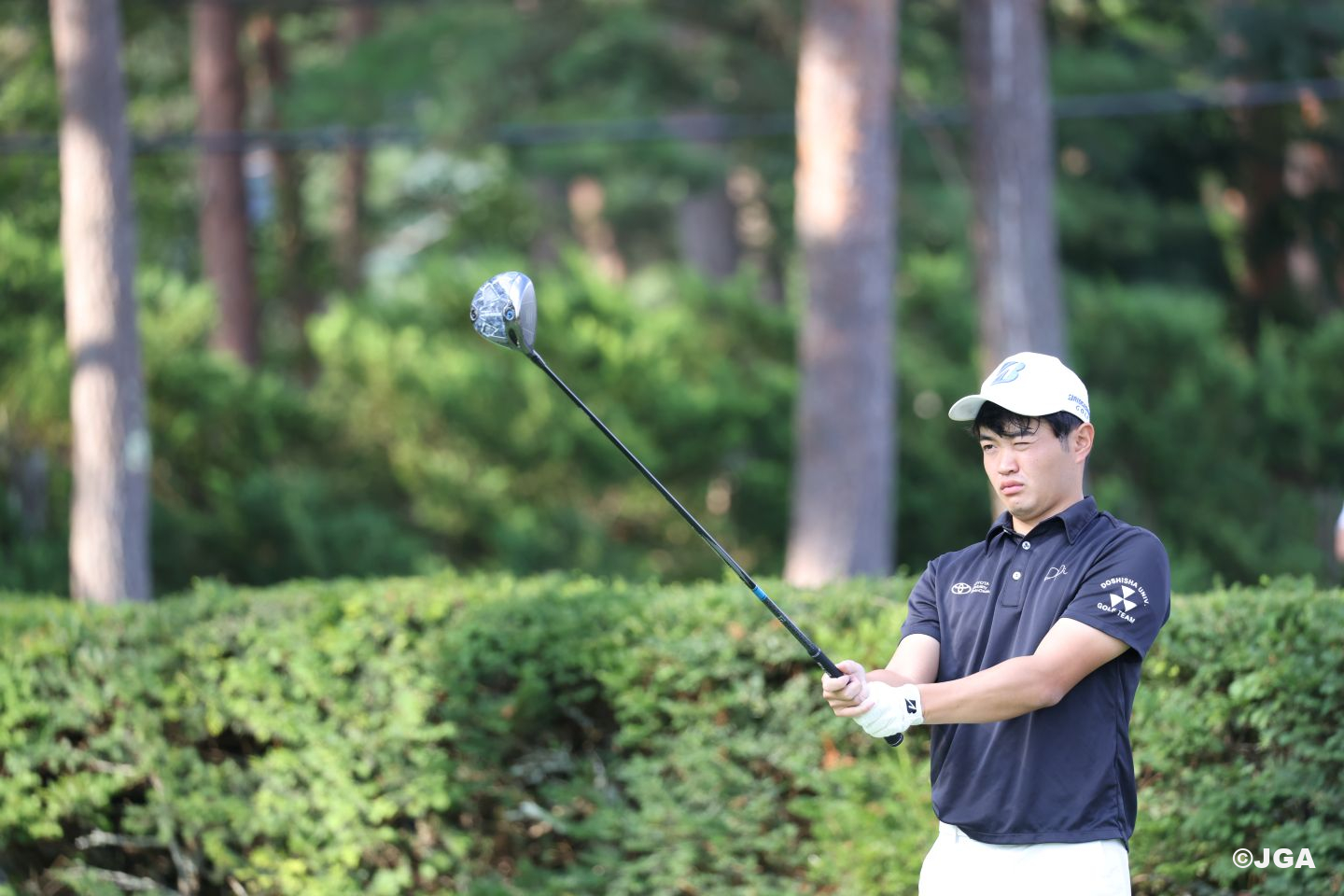 スタートホールの1番(575ヤード・パー5)は「ティーショットもセカンドショットも完璧だった」と、下園航太(同志社大学4年)は第2ラウンドを回想し始めた。2番はパーをセーブし、3番(パー3)と4番で連続バーディを決める。「どちらも7メートルぐらいあったんですけど、今日一日を通して距離のあるパットのタッチとライン読みが合っていて決めることができました」と続けた。