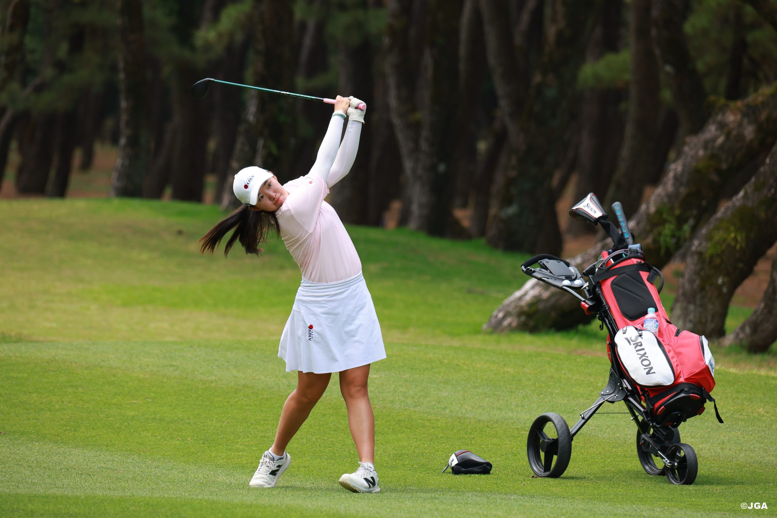 2025年度(第45回)クイーンシリキットカップアジア太平洋女子ゴルフチーム選手権は15日、宮崎県宮崎市のトム・ワトソンゴルフコースで第3ラウンドが行われた。首位の韓国チームを追う日本チームは、長澤愛羅(ルネサンス高校3年)が2つスコアを伸ばして、通算6アンダーパーの個人戦2位を堅守。しかし、新地真美夏(共立女子第二高校3年)と岩永杏奈(大阪桐蔭高校2年)はともにオーバーパーでのラウンドとなり苦しい1日となり、日本チームは通算10アンダーパーでムービングデーを終えた。一方、首位からスタートした韓国チームは、個人戦連覇がかかるSoomin Ohが11バーディ・1ボギーの62という驚異のスコアを叩き出す活躍でチームを牽引。2日続けてチームスコアを11アンダーパーとし、通算27アンダーパーで2位の日本チームに17打の大差をつけて3連覇に王手をかけた。