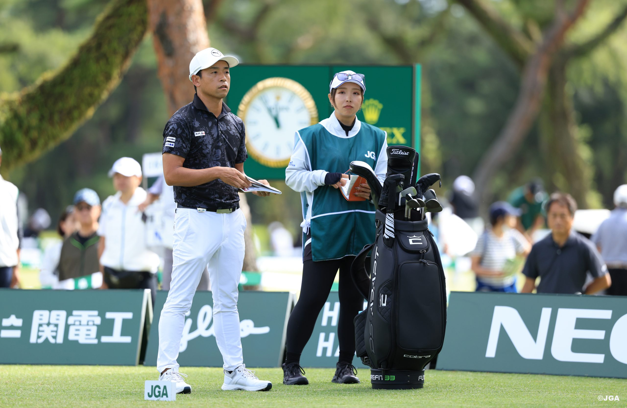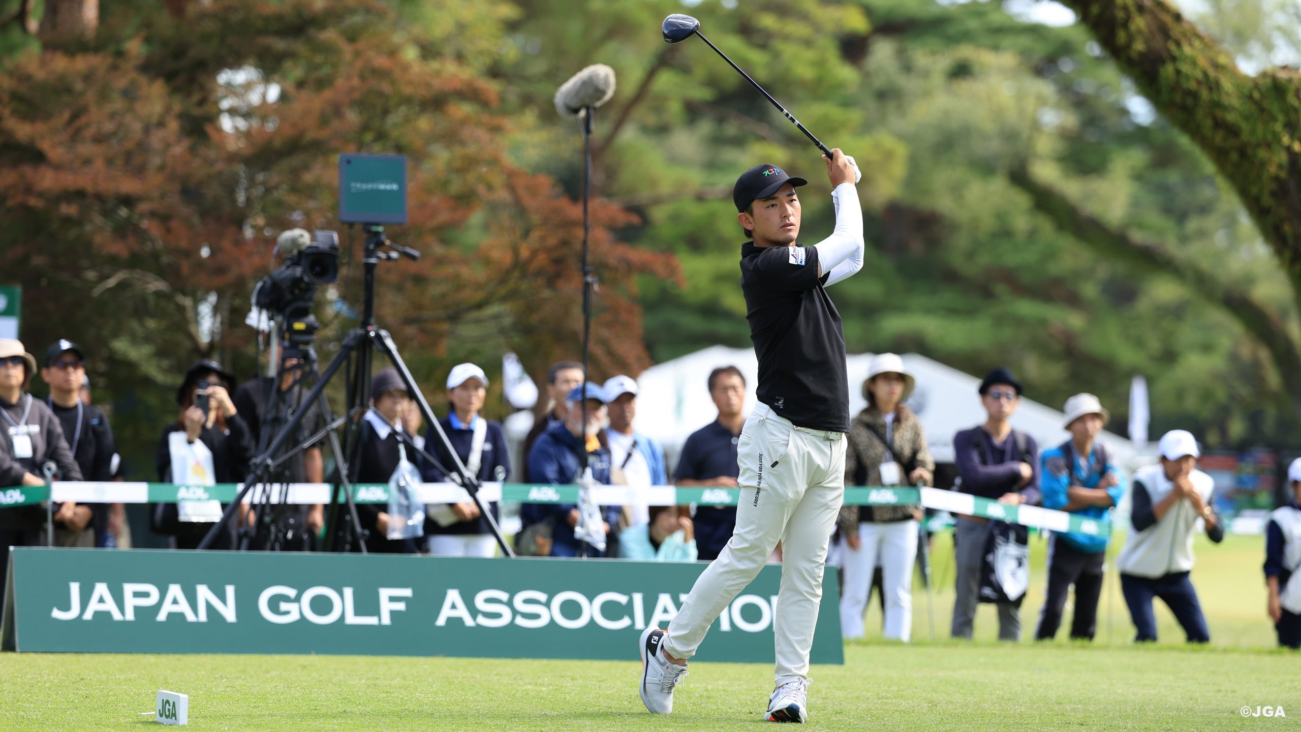 栃木県日光市の日光カンツリー倶楽部で開催の2025年度(第90回)日本オープンゴルフ選手権。秋晴れの中、第3ラウンドは定刻7時18分に第1組がスタートした。通算3アンダーパーで首位タイの原敏之と金子駆大の最終第34組は1番ホールをティーオフ。後半のラウンドに進出したアマチュア4名・プロ63名の合計67名の選手が2,000人を超えるギャラリーの声援を受けながら、ムービングデーのプレーを進めている。