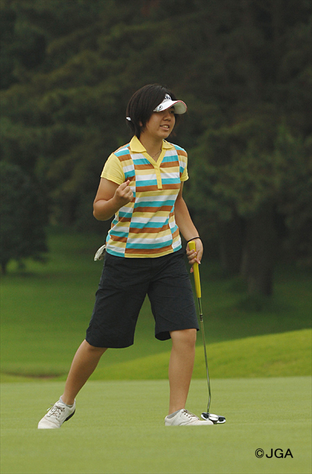 宮里18Hバーディパットを決めてのガッツポーズ