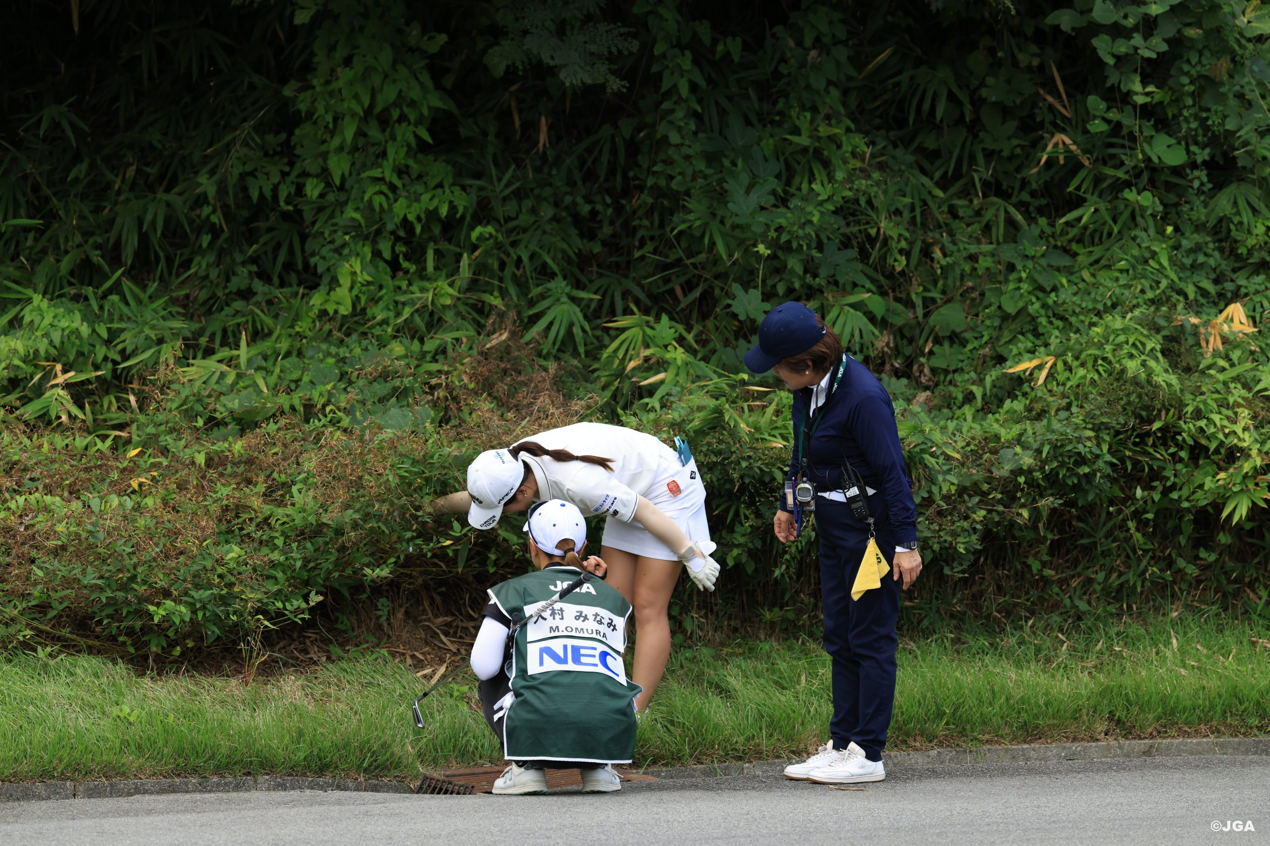 また、コースセッティングにおいては、通常営業でアウトオブバウンズ(OB)と定める区域をインバウンズとしたことで、球が深い「ブッシュ(灌木帯)」に入り込むケースが多発しました。これにより、アンプレヤブルの救済を受ける選手が多く見られましたが、中にはブッシュからのプレーを断念し、「ストロークと距離」の処置を選択した選手もいました。