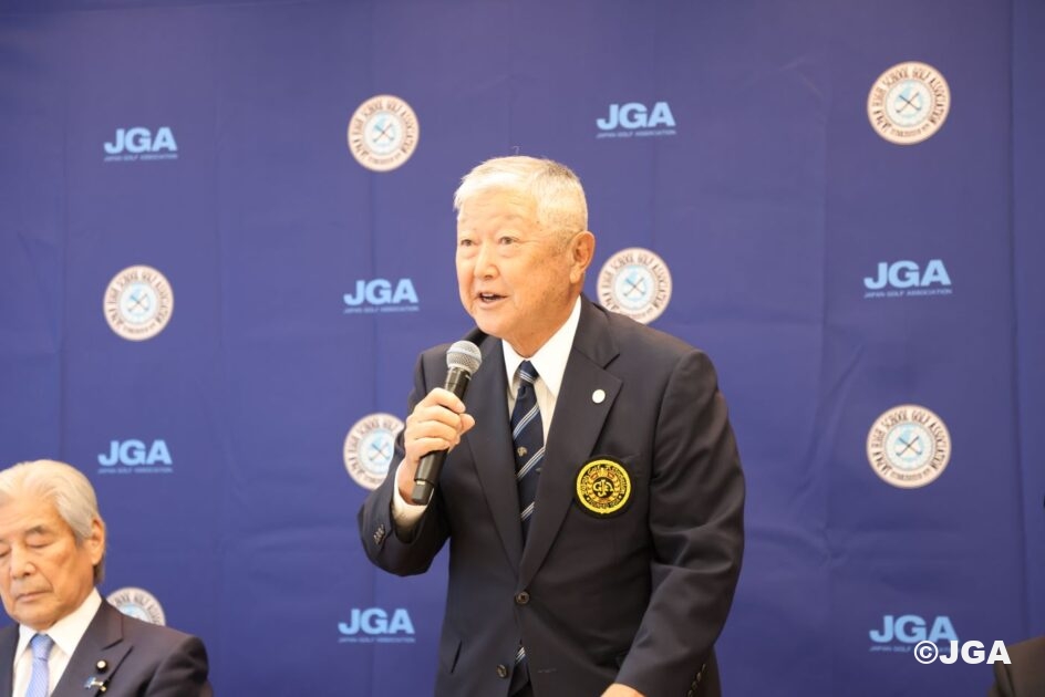 記者発表会に出席した池谷正成JGA会長は、「日本ジュニアゴルフ選手権と緑の甲子園はジュニアゴルファーのみなさんが最も重要な試合として位置づけて熱戦を繰り広げてくれています。しかしながら、ここ数年の記録的な暑さの中での競技は、選手の健康に危険な状況でありました。共催により、選手のみなさんがそれぞれの競技でベストなプレーをしてくれる環境を整えていけると思います。ジュニアゴルファーには、日本ジュニアでは選手自身の誇りのために、緑の甲子園ではチームメイトとの友情を深め、一致団結して日本一の座を目指して頑張ってほしいと思います」と挨拶。