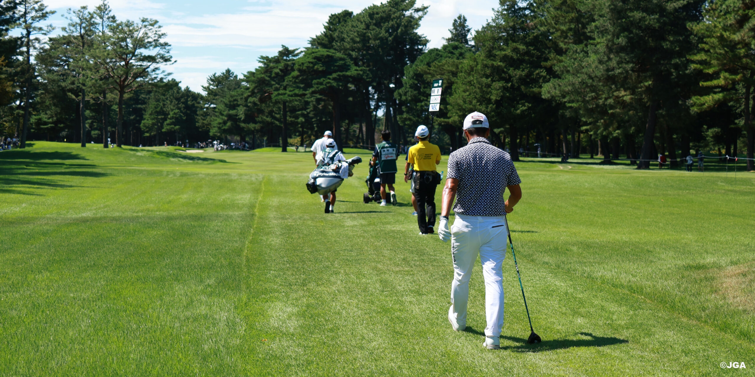最終組は、通算7アンダーパーで首位に並んでいる横尾要とI・J・ジャン(韓国)の2人。午前11時55分に1番ホールをティーオフした。